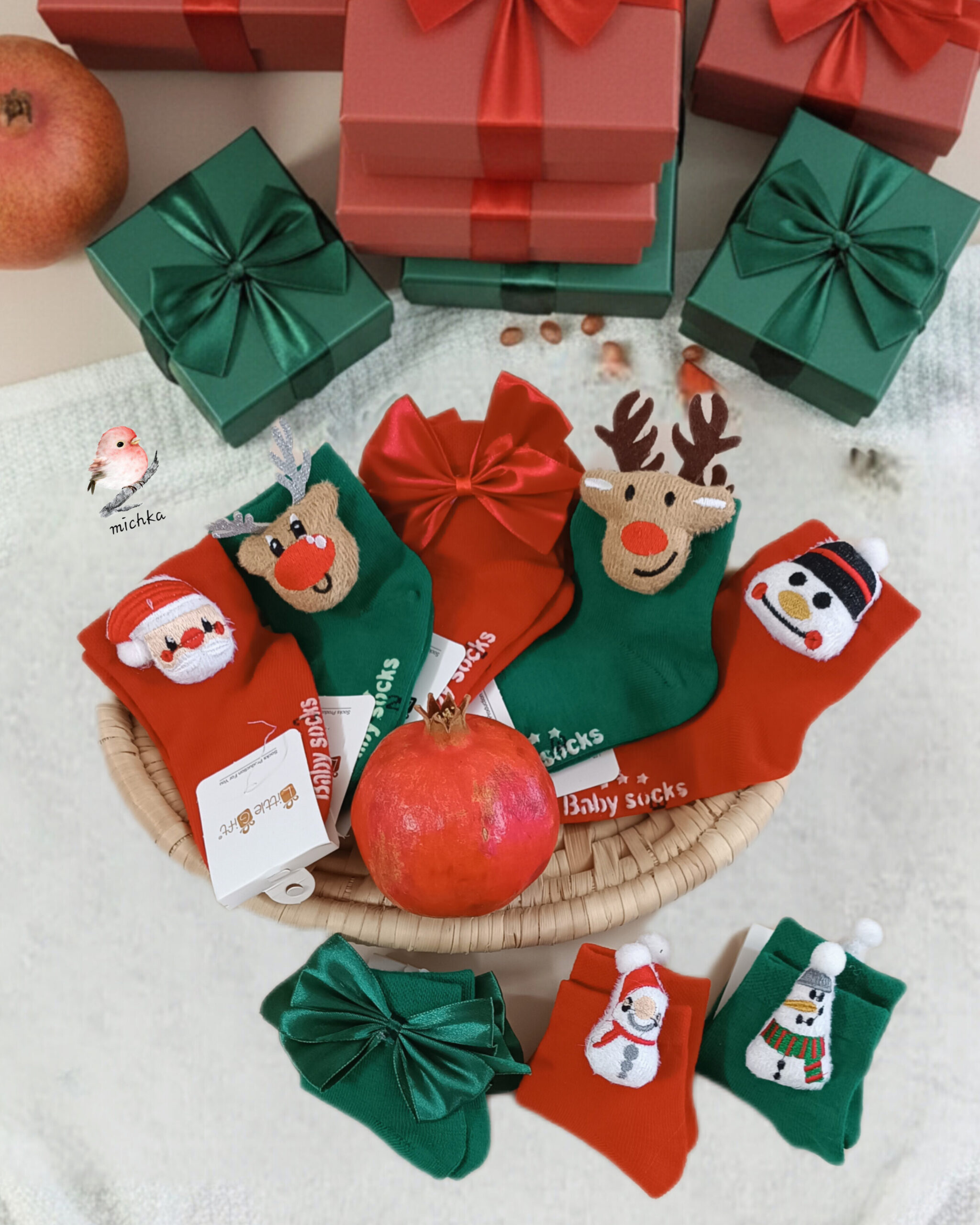 | طرح | سبز آدم برفی سایز یک ۱, سبز پاپیونی سایز ۱, سبز پاپیونی سایز ۳, سبز گوزن سایز ۳, سبز گوزن شاخ شاین سایز ۲, سبز گوزن طوسی سایز۴, قرمز آدمبرفی کلاه قرمز سایز یک۱, قرمز ادم برفی کلاه سیاه سایز ۳, قرمز بابانوئل سایز ۲, قرمز پاپیونی سایز ۲, قرمز گوزن سایز ۴ |